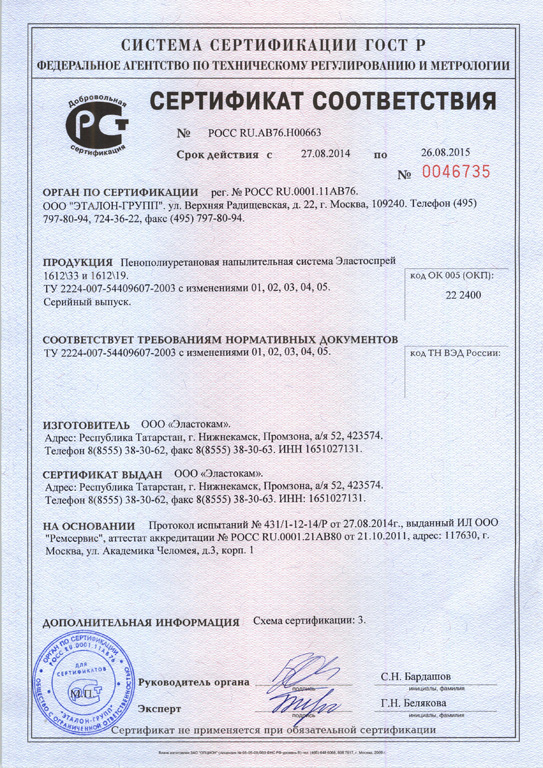 состояния компонентов. При полимеризации (застывании) пена прочно адгезирует (прилипает) к напыляемой поверхности и спустя 10-15